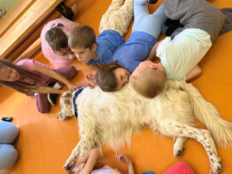 Az állat-asszisztált foglalkozások során a gyermekek közvetlenül érintkezhettek kutyákkal, miközben értékes állatvédelmi ismereteket sajátítottak el.
